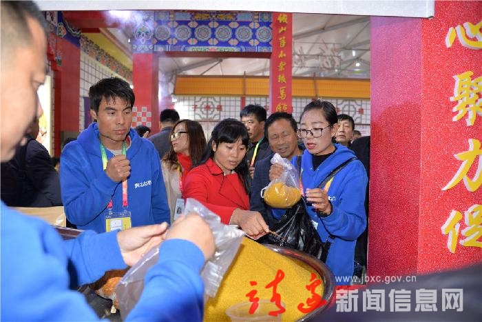 “这是龙州香谷米,米油特别稠,一斤7元。”“这个南瓜和小米搭配,世上独一无二的美味!”“金丝南瓜籽儿是我们黄土之恋的产品,一斤十五元。”靖边展位前,介绍农产品的声音此起彼伏,参展群众络绎不绝,前来购买产品的顾客纷纷慷慨解囊。
