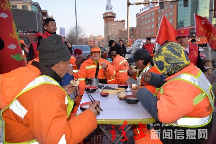 3月5日清晨7:10,靖边县民乐园广场紫靖餐饮店门前又排起了队伍,董事长贺军带领志愿者及紫靖餐饮的员工们,为环卫工人及群众准时发放爱心早餐。当天是紫靖餐饮集团常年免费赠送“爱心香粥”九周年庆典。