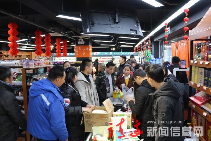 县供销合作社负责人介绍了供销年货大展销暨宜品生活超市筹建情况。参会领导进行了开业剪彩,随后参观了宜品生活超市。