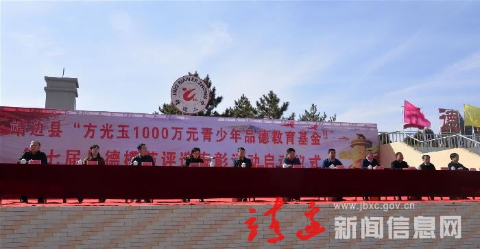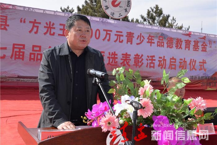 仪式上,靖边县1000万元青少年品德教育基金出资人方光玉为第七届品德模范评选表彰活动的启动致了辞。他希望,老师们能够肩负起神圣的历史使命,无愧于人类灵魂工程师的光荣称号,把立德树人的根本任务传输到学生的脑海里,体现在行动中;同学们在成才之前先学好做人,将来成为新时代社会主义合格的建设者和接班人。