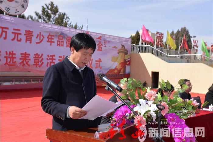 阳春三月天气新。3月13日,靖边县“方光玉1000万元青少年品德教育基金”第七届品德模范评选表彰活动启动仪式在靖边县第二中学举行。县委书记刘维平,县委常委、宣传部长邬晓君,县人大副主任高升,副县长谢红静,县政协副主席刘宝玉,全国第六届道德模范提名奖获得者、“中国好人”、陕西省第三届道德模范、榆林鹤翼航天航空科技创新有限责任公司董事长、靖边县1000万元青少年品德教育基金出资人方光玉出席活动。副县长谢红静主持仪式。县委常委、宣传部长邬晓君讲话。