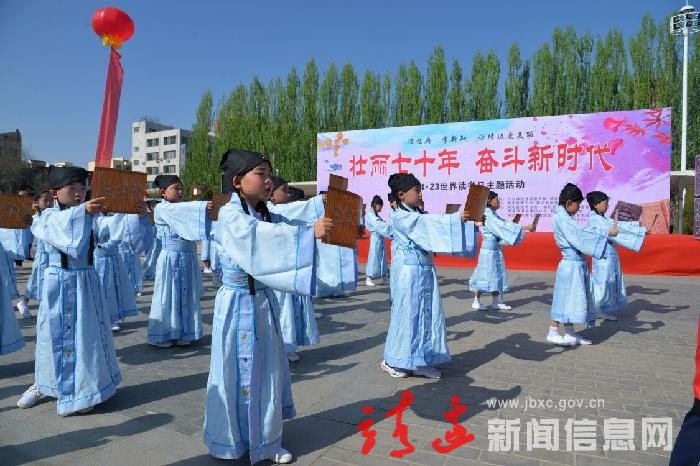 仪式后,靖边县第十二小学、金桥中学等学校单位的师生举行了经典诵读活动。