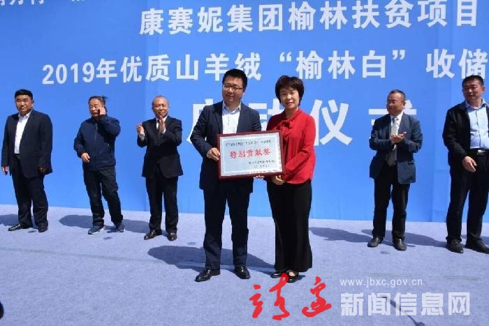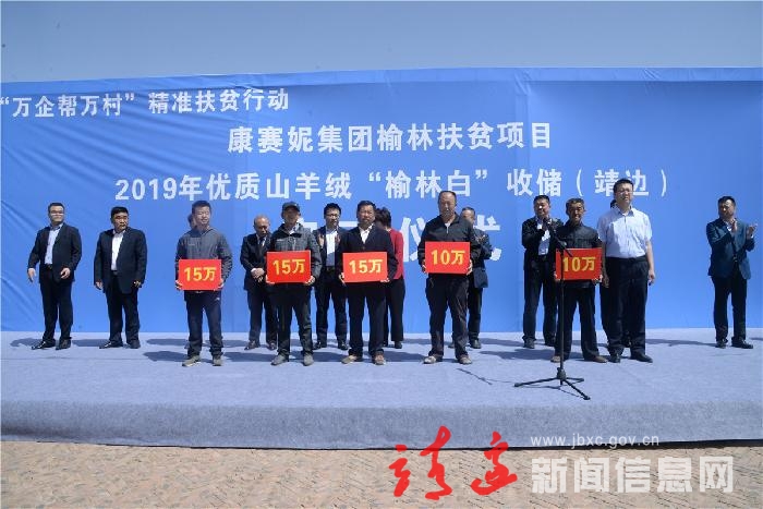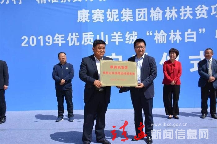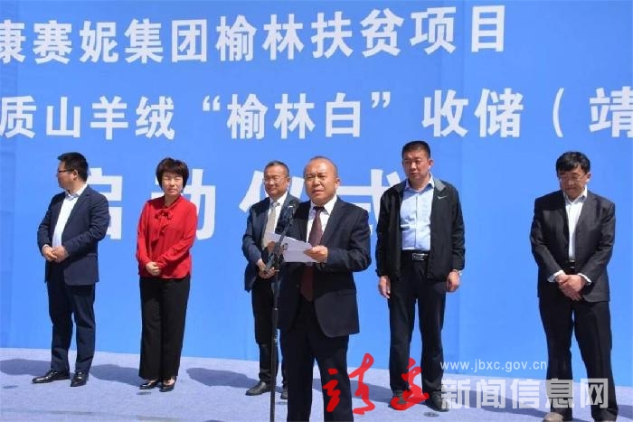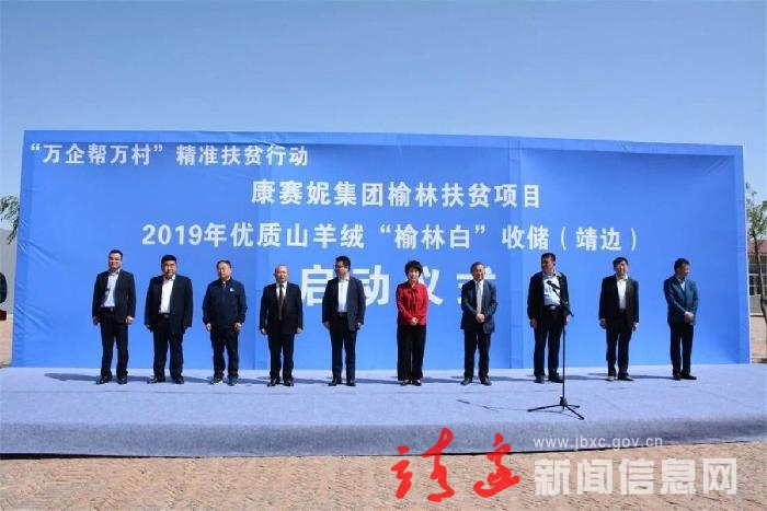 5月17日,康赛妮集团榆林扶贫项目2019年优质山羊绒“榆林白”收储活动在靖启动。市政协副主席、市工商联主席、市总商会会长贾正兰,市工商联(总商会)副主席张修前,康赛妮集团董事长、总裁薛惊理,县委常委、常务副县长孟春伟,县政协副主席米文飞及相关单位负责人参加启动仪式, 县委常委、统战部长刘钧主持启动仪式。