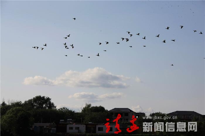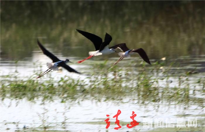 这是8月1日,在芦河湖泊湿地拍摄的受保护鸟群栖息地。据了解,芦河湿地栖息、繁衍着20多个种类、上万只大小鸟群,这里有国家二级保护动物白琵鹭、蓑羽鹤,省级保护动物苍鹭、大天鹅、小天鹅等。