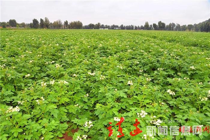 本报讯(白凌燕)俗话说,“洋芋花开赛牡丹。”时下,靖边县王渠则镇闫米洼村马铃薯示范田的400余亩马铃薯进入盛花期,洁白如雪的洋芋花与绿色茎叶、蓝天、黄土相互映衬,显得清新脱俗、分外美丽。