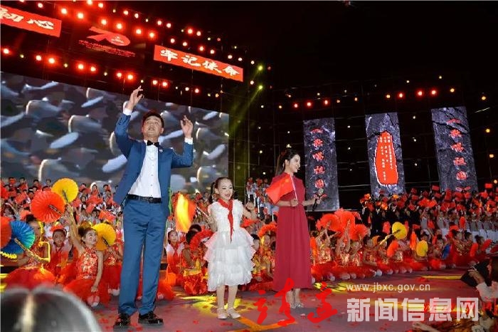 《春天的故事》、《走进新时代》、《不忘初心》等歌曲则描绘了改革开放及习近平新时代中国特色社会主义以来波澜壮阔的社会主义建设景象,展现了新时代的靖边人撸起袖子加油干,追逐光荣和梦想,为祖国母亲续写时代华章的豪情壮志和对祖国母亲的深深祝福。晚会歌曲《歌唱祖国》中落下帷幕。