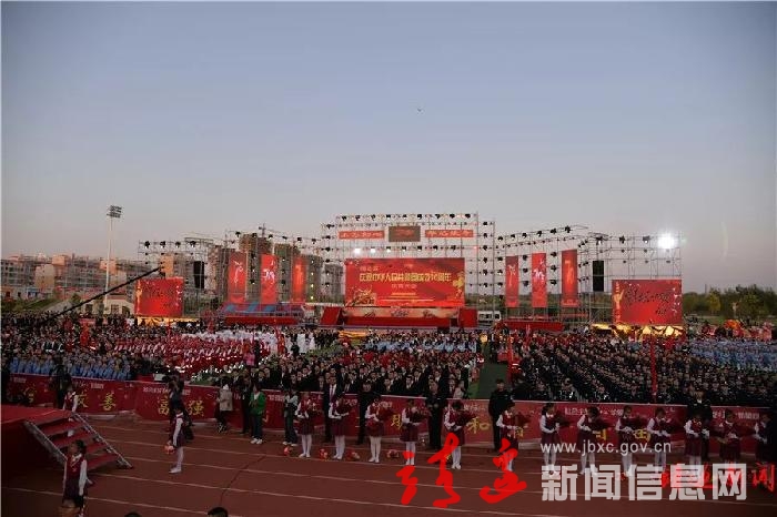 9月29日晚,壮丽70年 奋斗新时代——靖边县庆祝中华人民共和国成立70周年庆典活动在靖边县城市运动公园举行。县委书记刘维平,县人大常委会主任白春阳,县委副书记、县长贺湘如,县政协主席王武,县委副书记孙利斌,县委常委胡荣芳、邬晓君、孟春伟、杜芳霞、李万昌、郭兵等县级领导与全县社会各界干部群众一起参加庆典活动,观看演出,共同欢庆中华人民共和国成立70周年。