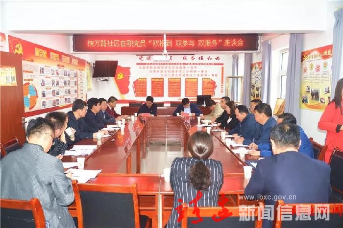 座谈会上,统万路社区负责人介绍了该社区在职党员“双报到 双参与 双服务”工作开展情况;县委组织部相关负责人就全县城市党建“双报到 双参与 双服务”工作开展情况作了汇报;县人社局、教体局、卫健局等在统万路社区辖区的各单位主要负责人分别就各自单位在社区领取的城市党建工作任务作了表态发言。