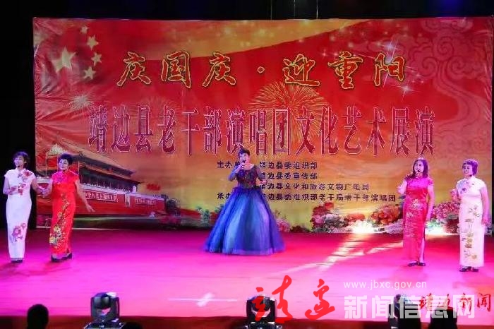 本报讯(樊悦)金秋送爽山河美,丹桂飘香庆辉煌。在全国人民庆祝国庆,欢度重阳的美好日子里,10月10日至11日,靖边县老干部演唱团,在政府广场和新区运动公园进行《庆国庆 迎重阳》文化艺术展演。他们用载歌载舞的形式热情歌颂伟大的党,伟大的祖国,赞美新中国成立70年来走过的光辉历程和建立的丰功伟绩。