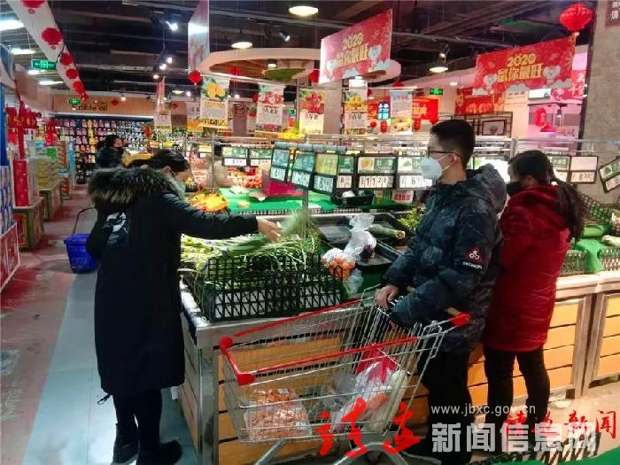 1月29日,记者在我县全家福超市康隆店看到:一桶桶食用油码放整齐,货架充盈。一袋袋米面也堆成一座小山。生鲜区域,肉品供应充足、新鲜蔬菜、水果品类齐全,客流相对集中,并没有出现想象中人头涌动、抢购的情况,跟平时周末的客流差不多。正在购买蔬菜的胡女士说,超市各种蔬菜价格一直稳定,没有上涨,不需要抢购囤积,备够两三天的就可以了。