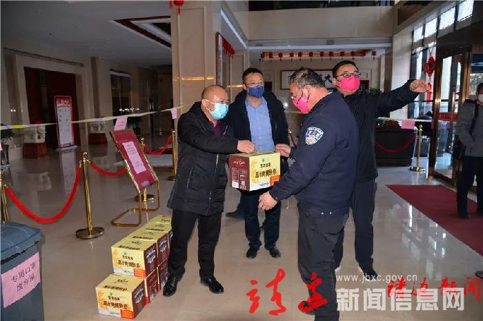 在看望到靖园酒店等奋战在疫情防控一线的工作人员时,孟春伟查看了工作人员消毒等设施设备配置情况,向在场工作人员了解监测开展和值班取暖情况,对他们坚守岗位辛勤工作表示感谢,并再次叮嘱他们注意做好个人健康防护措施。