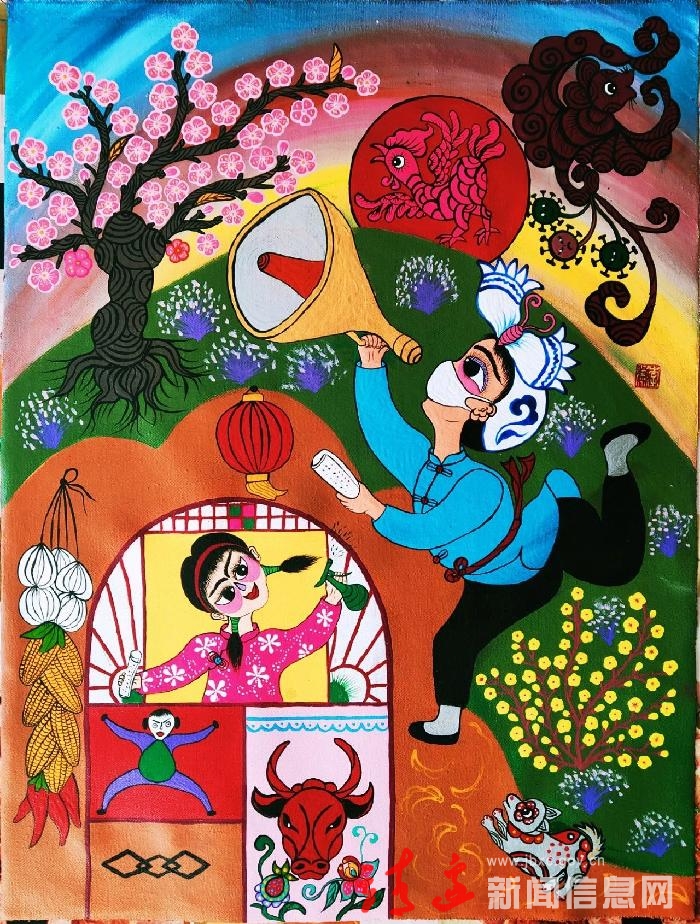 农民画《守护家园》 / 李涛