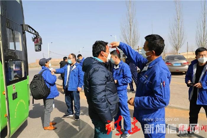 体温测量、登记备案,入内必须戴好口罩……在靖边县华伟塑业厂区门口的疫情防控检测点,工人们必须经过严格“考验”才可进厂工作。