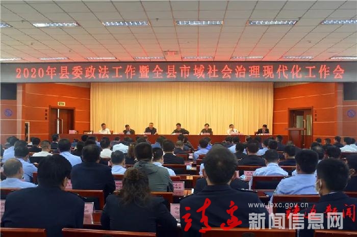 胡荣芳作了全县政法工作暨全县市域社会治理现代化工作报告,报告回顾总结了2019年工作,安排部署了2020年工作;杨利军宣读了《关于加快推进市域社会治理现代化提升基层社会治理水平的实施意见》。