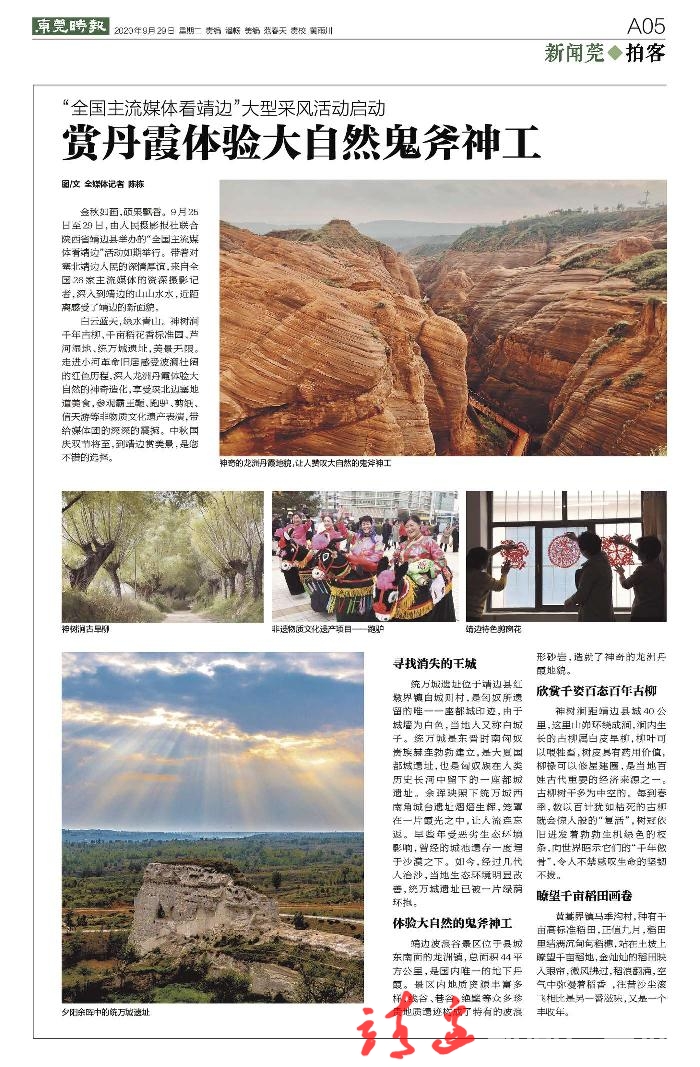 金秋如画,硕果飘香。9月25日至29日,由人民摄影报社联合陕西省靖边县举办的“全国主流媒体看靖边”活动如期举行。带着对塞北靖边人民的深情厚谊,来自全国26家主流媒体的资深摄影记者,深入到靖边的山山水水,近距离感受了靖边的新面貌。