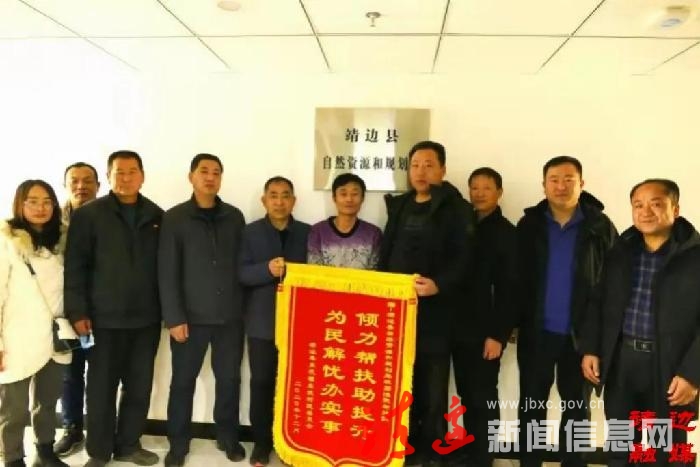 1月19日,靖边县东坑镇东坑村相关负责人专程来到靖边县自然资源和规划局,将一面撰有“倾力帮扶助提升 为民解忧办实事”的锦旗送到了自然资源和规划局领导干部手中,向靖边县自然资源和规划局结对帮扶软弱涣散的东坑村表示感谢。