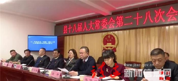 会议听取审议了第28次全委会议程(草案);听取审议了县政府关于脱贫攻坚工作情况的报告;听取审议了县政府关于防沙治沙工作情况的报告;听取审议了县政府关于全县食品安全工作情况的报告;听取审议了关于全县食品安全工作情况的调研报告;听取审议了县政府关于全县国有资产管理情况的综合报告;听取审议了县政府关于全县行政事业性国有资产管理情况的报告;听取审议了关于全县行政事业性国有资产管理情况报告的审查报告;听取审议了县政府关于2020年财政预算调整(草案)的报告;听取审议了关于2020年财政预算调整(草案)的审查报告;听取审议了“两院”部分工作人员履职情况的查访报告;听取审议了在靖部分市人大代表履职情况的查访报告。