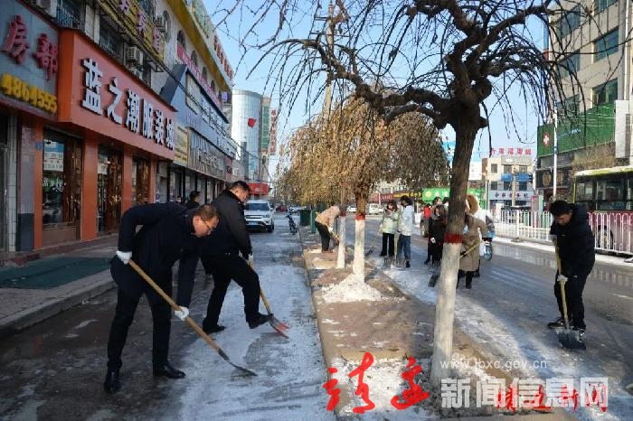 虽然气温较低、寒风阵阵,但并没有阻挡广大党员干部扫雪除冰的热情,大家三人一群、两人一伙,有的扫雪、有的除冰,干的热火朝天。在寒冷的街头展现了一幅幅温馨的画面,外出市民纷纷为党员干部们点赞,有的群众也自发加入到了扫雪的队伍中来。
