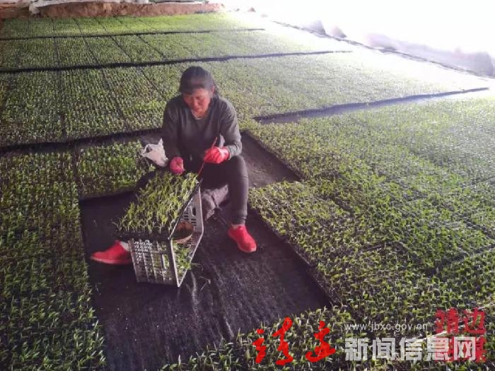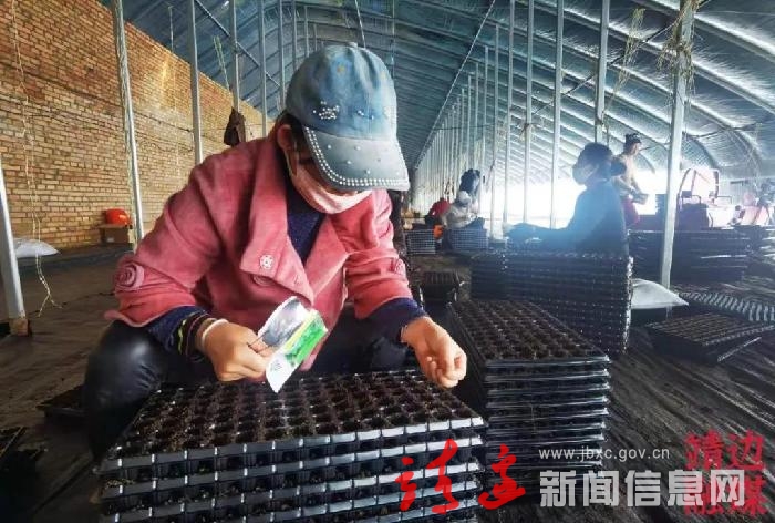 在黄家峁村鸿丰专业合作社的一座育苗温棚里,育苗盘被青绿色覆盖,村民李新芳正“侍弄”着篮筐里的一盘辣椒苗,随着她手中的筷子在育苗盘格子中一插一起一落,多余的辣椒苗很快就匀到另外的空格里。“为了让辣椒苗长势好、营养足,一个穴里只能有一株辣椒苗。”李新芳一边匀苗一边微笑着告诉记者,“趁着农闲来打一段时间的工,合作社离家近,在温棚里务工冻不着,晒不上,工作简单,每天还有100元的收入。”“现在正是辣椒苗成长管护关键期,用工量较大,平均每天就有40多人在棚内务工,仅育苗期间开出的工资就超过24万元。”靖边县鸿丰合作社负责人闫浩东介绍。小小的幼苗不仅满足了村民就近务工的需求,也带动了附近村民种植蔬菜的激情与信心,据了解,2021年该合作社通过开展“订单供苗”共育种苗700万株,出棚后95%供应于东坑镇当地菜农。