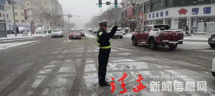 鹅毛大雪纷纷扬扬地下了一整天,马路上指挥疏导交通的城区一中队民辅警们的警帽、警服上盖上了一层积雪,脸颊冻的通红,鞋底都已湿透,雪中连续疏导交通达十个小时的他们再现了靖边交警的护学风景线!