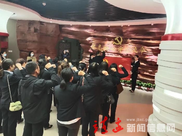 参观过程中,大家认真聆听了社区挂职干部的讲解,从青阳岔干事会的成立到解放镇靖城,从小河会议到靖边县委政府的成立,从三大改造到改革开放,通过一段段文字,一幅幅图片,一幕幕革命场景,生动展现了靖边人民从1921-2021年为民族独立、人民幸福和国家富强、开展革命斗争和社会主义建设的全过程,革命前辈们可歌可泣的光辉事迹深深地感染和触动了每一位党员。参观结束时,社区支部书记李伟带领大家重温了入党誓词。