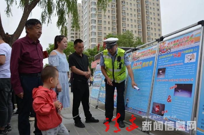 活动现场,交警大队通过悬挂条幅、设置咨询点、发放宣传资料、摆放宣传展板、播放《“一盔一带”安全守护行动倡议书》语音、集中查处等方式,积极引导并呼吁广大市民一起参与到“一盔一带“安全守护行动中来。
