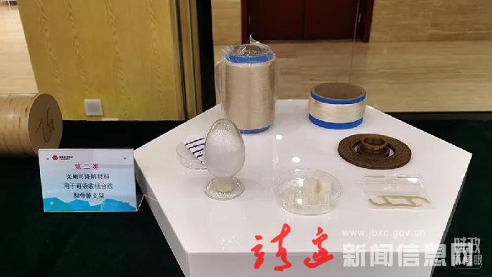 △现场陈列的可吸收缝合线、骨骼支架等。(总台央视记者姚瑶拍摄)