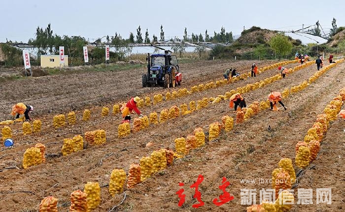 10月12日,靖边县东坑镇黄家峁村群众在收获新品种马铃薯。