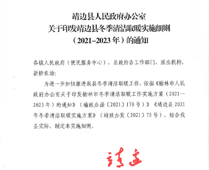 靖边县发布冬季清洁取暖实施细则 (2021-2023年)
