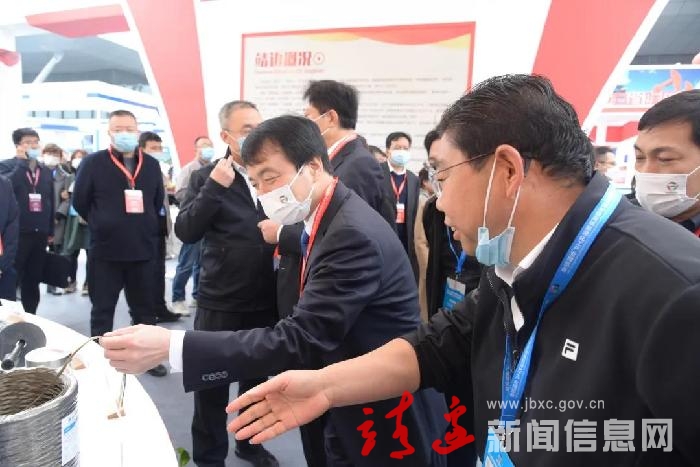 工作人员为前来检查指导的领导详细介绍了靖边展厅展出的各种优势产品。