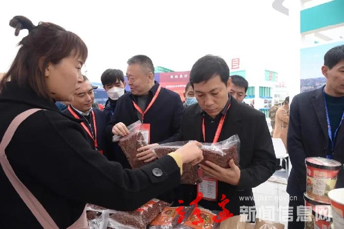 在靖边好产品馆,现场展出的陕北民阁速食羊杂碎、靖边乔沟湾花椒、鲜桃、食用油等特色农产品同样受到了参观者的青睐,往来参观、购买、品尝的游客络绎不绝。