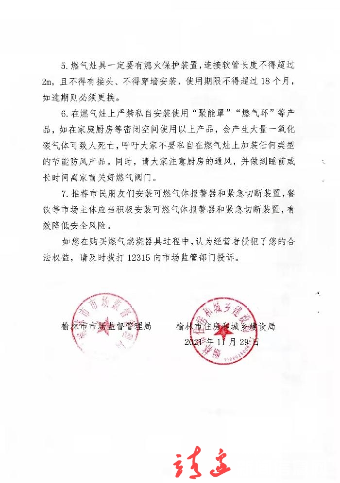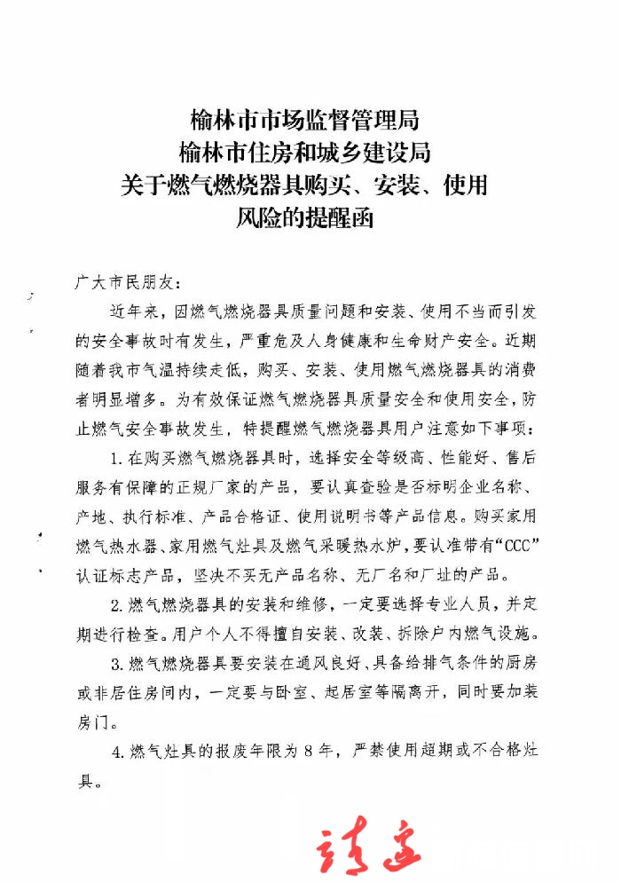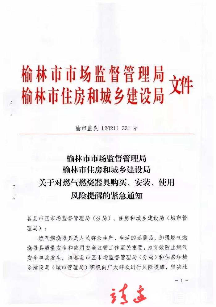 关于对燃气燃烧器具购买、安装、使用风险提醒的紧急通知