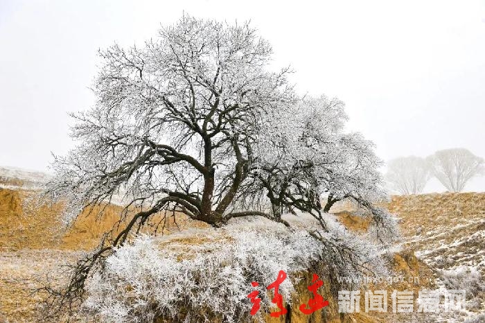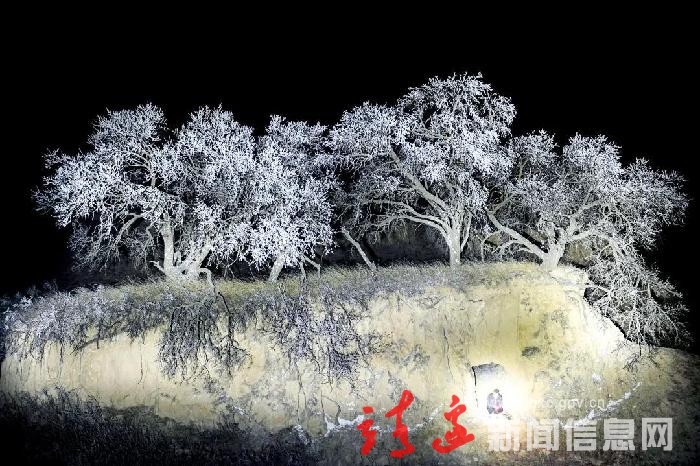 一夜寒风起,万树银花开。1月21日至24日夜间的低温天气,使靖边县乔沟湾镇银湾村李家梁入冬以来第一次有雾凇冰凌出现,山峁土坡上的柳树、杏树树枝上裹满各种形状的雾凇冰凌,景色十分宜人。