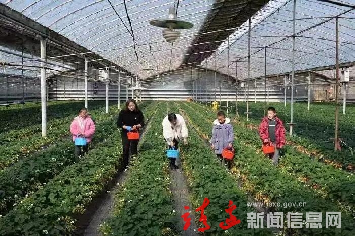 王治录一边采摘,一边说:“春节正是草莓新鲜上市的时候,最近前来采摘的游客特别多,我们的草莓供不应求,也不愁销路,都是县城里来的采摘客!”