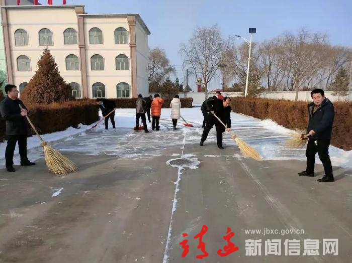 2022年2月8日,红墩界镇组织机关干部开展单位院落积雪大清扫行动,为来镇群众提供干净清爽的办事环境。