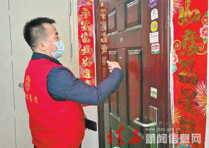 “您好!打扰了,我们是社区志愿者,请问您最近做核酸检测了吗?新冠疫苗接种了几针?家中近期有没有外地返靖人员?麻烦您加一下业主群,有什么新的防疫政策我们会第一时间通知您。”近日,党员志愿者牛建军再一次走进他负责包抓的小区单元,挨家挨户敲门,仔细排查、登记信息,切实做到敲门问平安、入户送温暖。