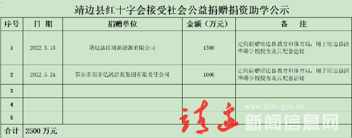 靖边县红十字会接受社会公益捐赠捐资助学公示(一)