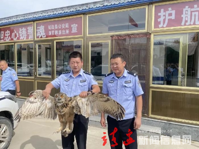 8月29日,靖边县公安局黄蒿界派出所民警救助一只国家二级野生保护动物猫头鹰。