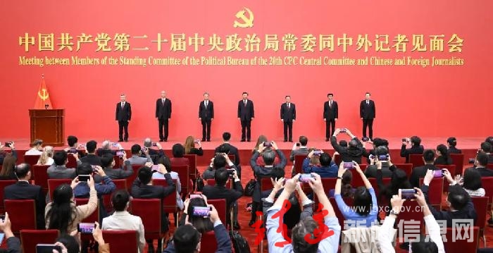 10月23日,刚刚在中国共产党第二十届中央委员会第一次全体会议上当选的中共中央总书记习近平和中共中央政治局常委李强、赵乐际、王沪宁、蔡奇、丁薛祥、李希在北京人民大会堂同中外记者亲切见面。新华社记者 申宏 摄 昨天,中国共产党第二十次全国代表大会已经胜利闭幕了。这是一次高举旗帜、凝聚力量、团结奋进的大会。 国际社会对中共二十大高度关注。许多国家的政党发来了贺电贺信,其中很多是国家元首、政府首脑、政党和重要组织机构领导人发来的。在此,我谨代表中共中央,致以诚挚谢意! 刚才,我们召开中共二十届一中全会,选举产生新一届中央领导机构,选举我继续担任中共中央总书记。现在,我向大家介绍其他6位常委同事:李强同志、赵乐际同志、王沪宁同志、蔡奇同志、丁薛祥同志、李希同志。 赵乐际同志、王沪宁同志是十九届中央政治局常委,其他同志都是十九届中央政治局委员,大家都比较了解。 在这里,我代表新一届中共中央领导成员,衷心感谢全党同志的信任。我们一定牢记党的性质和宗旨,牢记自己的使命和责任,恪尽职守、勤勉工作,决不辜负党和人民重托。 经过全党全国各族人民共同努力,我们如期全面建成小康社会、实现了第一个百年奋斗目标。现在,我们正意气风发迈上全面建设社会主义现代化国家新征程,向第二个百年奋斗目标进军,以中国式现代化全面推进中华民族伟大复兴。 ——新征程上,我们要始终保持昂扬奋进的精神状态。全面建设社会主义现代化国家寄托着中华民族的夙愿和期盼,凝结着中国人民的奋斗和汗水。中国式现代化是中国共产党和中国人民长期实践探索的成果,是一项伟大而艰巨的事业。惟其艰巨,所以伟大;惟其艰巨,更显荣光。 为了这一事业,无数先辈筚路蓝缕、披荆斩棘,进行了艰苦卓绝的奋斗,我们心中永远铭记着他们的奉献和牺牲。我们要埋头苦干、担当作为,以更加强烈的历史主动精神推进马克思主义中国化时代化,不断谱写新时代中国特色社会主义新篇章,奋力实现中华民族伟大复兴的中国梦。 ——新征程上,我们要始终坚持一切为了人民、一切依靠人民。一路走来,我们紧紧依靠人民交出了一份又一份载入史册的答卷。面向未来,我们仍然要依靠人民创造新的历史伟业。 道阻且长,行则将至。前进道路上,无论是风高浪急还是惊涛骇浪,人民永远是我们最坚实的依托、最强大的底气。我们要始终与人民风雨同舟、与人民心心相印,想人民之所想,行人民之所嘱,不断把人民对美好生活的向往变为现实。 ——新征程上,我们要始终推进党的自我革命。一个饱经沧桑而初心不改的党,才能基业常青;一个铸就辉煌仍勇于自我革命的党,才能无坚不摧。百年栉风沐雨、淬火成钢,特别是新时代10年革命性锻造,中国共产党更加坚强有力、更加充满活力。 面对新征程上的新挑战新考验,我们必须高度警省,永远保持赶考的清醒和谨慎,驰而不息推进全面从严治党,使百年大党在自我革命中不断焕发蓬勃生机,始终成为中国人民最可靠、最坚强的主心骨。 ——新征程上,我们要始终弘扬全人类共同价值。当今世界面临前所未有的挑战。我们历来主张,人类的前途命运应该由世界各国人民来把握和决定。只要共行天下大道,各国就能够和睦相处、合作共赢,携手创造世界的美好未来。 我们将同各国人民一道,弘扬和平、发展、公平、正义、民主、自由的全人类共同价值,维护世界和平、促进世界发展,持续推动构建人类命运共同体。 中国发展离不开世界,世界发展也需要中国。经过改革开放40多年不懈努力,我们创造了经济快速发展和社会长期稳定两大奇迹。现在,中国经济韧性强、潜力足、回旋余地广,长期向好的基本面不会改变。中国开放的大门只会越来越大。我们将坚定不移全面深化改革开放,坚定不移推动高质量发展,以自身发展为世界创造更多机遇。 新征程是充满光荣和梦想的远征。蓝图已经绘就,号角已经吹响。我们要踔厉奋发、勇毅前行,努力创造更加灿烂的明天。 几天来,记者朋友们对大会进行了充分报道,向全世界传递中国声音、传播中国共产党的主张,使世界的目光注视中国。感谢你们的辛勤工作,大家辛苦了! 欢迎大家多到中国各地走一走、看一看,客观真实向世界讲好中国故事,讲好中国共产党故事,讲好我们正在经历的新时代故事。