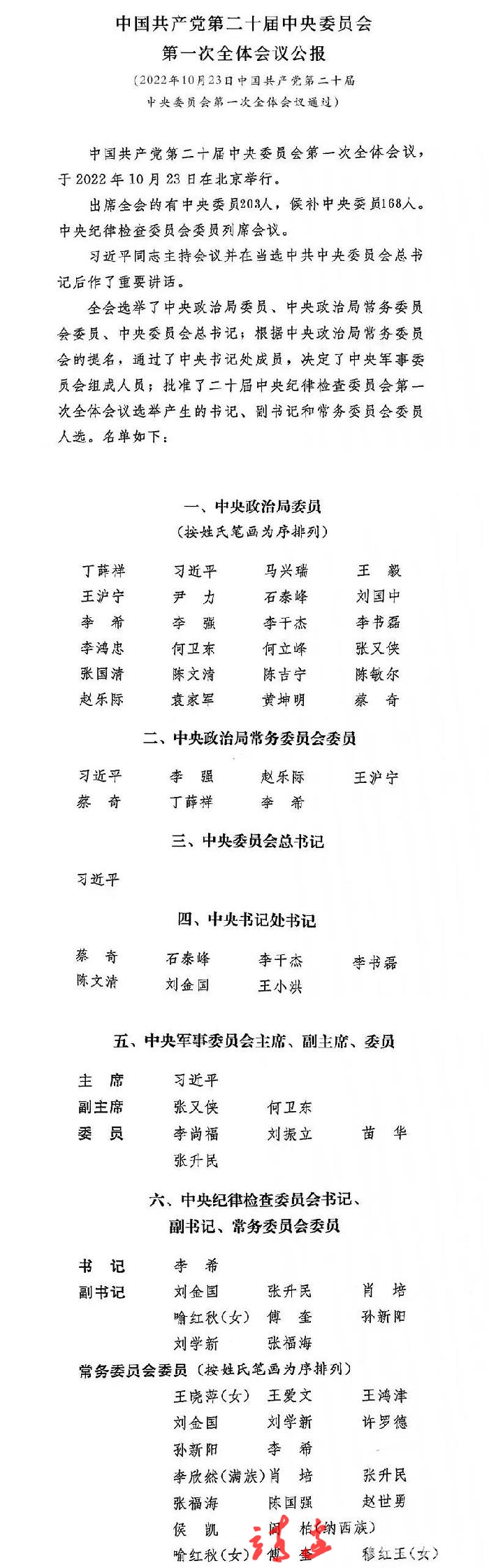 中共二十届一中全会公报