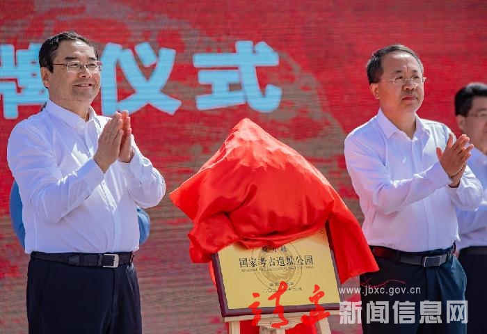 与会领导共同为统万城“国家4A级旅游景区”“国家考古遗址公园”揭牌