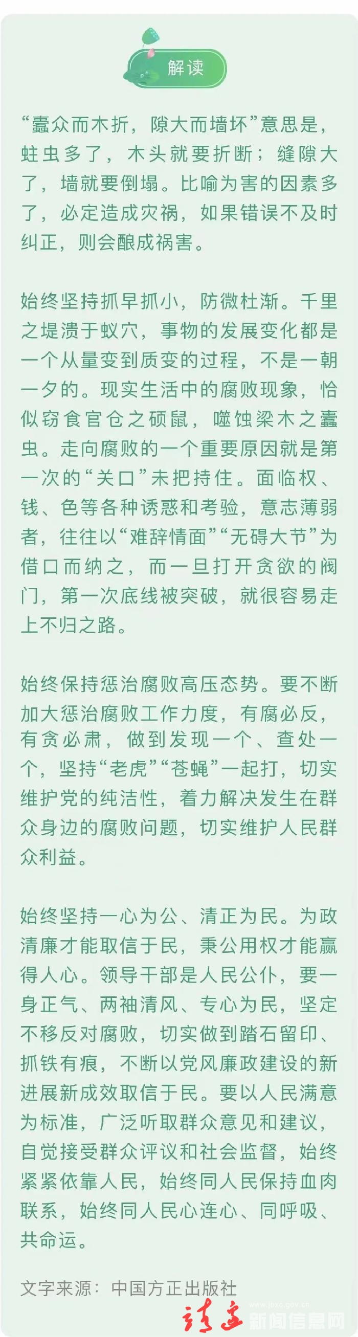 【每日廉语】(二十)|蠹众而木折,隙大而墙坏