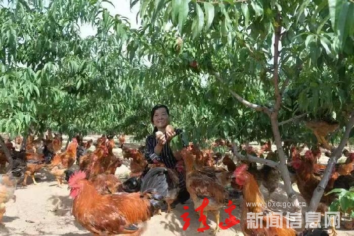 去年秋天,1000余只公鸡在桃树林中“闲庭信步”。这些林下散养的土公鸡,让冀世峰的“钱袋子”实实在在鼓了起来。