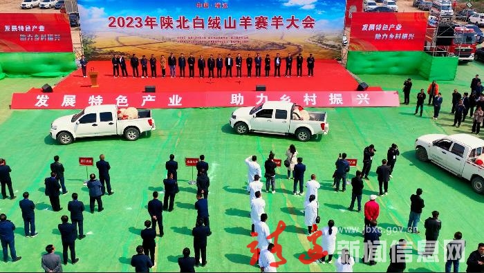 5月5日,2023年陕北白绒山羊赛羊大会在靖举行。榆林市副市长沈效功,西北农林科技大学副校长陈玉林,县委书记李世书,县人大常委会主任任利戈,县长曹龙,县政协主席贾浩飞,县委副书记李万昌,县委常委、宣传部部长李京津及榆林市12县(区)农业农村局、靖边县有关工作部门和各乡镇主要负责人,各县(市区)参赛代表,羊产品经销及农业机械企业代表等相关人员参加大会。曹龙主持大会。