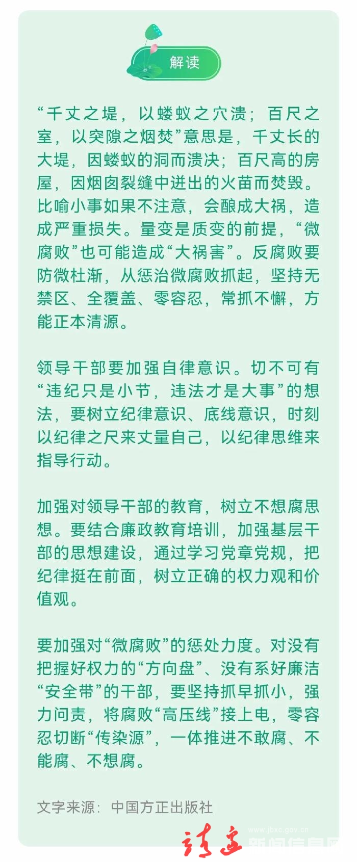 【每日廉语】(二十九)|千丈之堤,以蝼蚁之穴溃;百尺之室,以突隙之烟焚