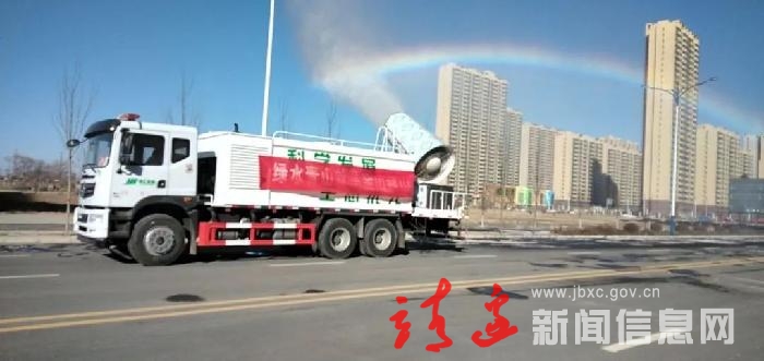 眼下,时值金秋,天高气爽,瓦蓝的天空悬挂一个火红的太阳,天空没有下一点雨。一个小男孩却大声尖叫并用手指着前方“看!彩虹!”只见一辆标有“铁腕治污,打赢蓝天保卫战”的雾炮车在统万路段缓缓前行,喷洒出的雾气上方挂着一道色彩鲜艳的彩虹。而这道彩虹成了靖边县城最新鲜亮丽的风景,惹的人们不由的驻足观看。