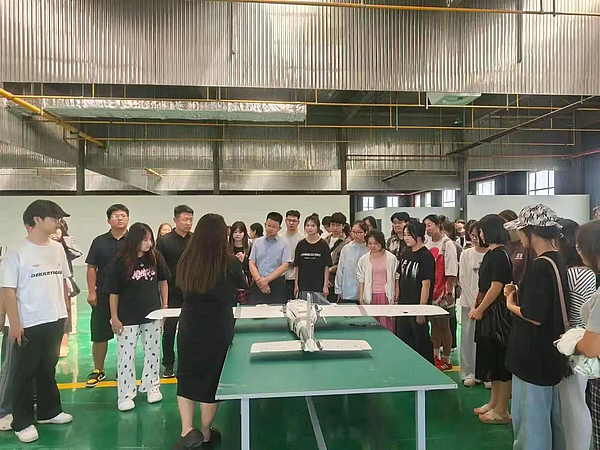 离开田间地头,青年们的脚步转向工业车间。在榆林市保通防务科技有限公司的无人机生产车间内,青春活力与科技气息交织。大家认真聆听企业负责人介绍靖边低空经济产业布局与企业发展概况,在生产车间的流水线旁、多类型无人机模型前驻足细看,深入了解无人机在农林植保、应急救援、国防军事等领域的创新应用。当听到“这架植保无人机每小时可作业 300亩,效率是人工的 20倍”时,青年们纷纷发出惊叹,深刻感受到靖边无人机产业蓬勃发展的态势与广阔前景。“没想到家乡已站上低空经济赛道前沿,这里的发展机遇值得我们学成归来深耕。”大学生刘宣祯拿起无人机部件仔细观察后,由衷感慨道。