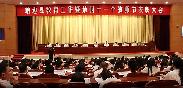 9月8日,靖边县教育工作暨第四十一个教师节表彰大会隆重召开。县委书记曹龙,县人大常委会主任任利戈,县长王剑飞,县委副书记张文祥等全体在单位县级领导出席会议。会议由县长王剑飞主持。