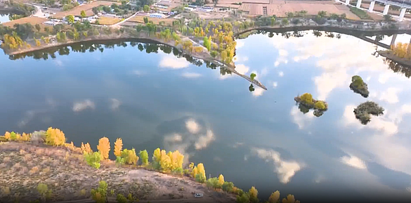 靖边县杨桥畔镇的龙眼水库,一入秋便美成了画卷。岸边的树木褪去葱茏,换上鎏金盛装,微风拂过,让澄澈的湖面漾起细碎的金波。湖水似多情的镜,将岸边金叶、天际流云尽数拥入怀中,分不清是叶染黄了水,还是水映亮了叶。
