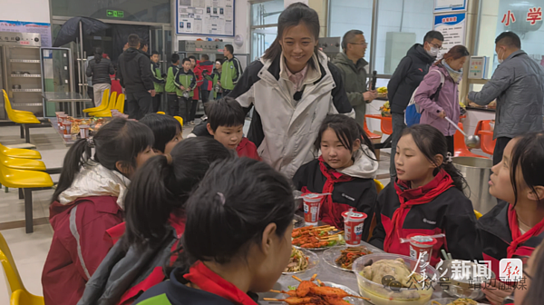 正午时分,车辆驶入佳县金明寺农村职业中学的大门,整个校园便立刻热闹起来。在孩子们的簇拥下,大林林一边开心地与他们交流,一边掏出背包里的零食分给大家。